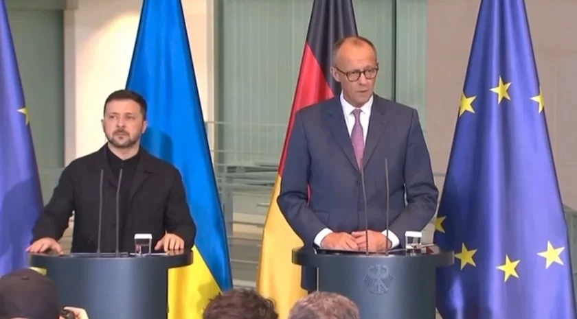 «Мы будем усиливать давление на Россию, чтобы ослабить военную машину Кремля», — заявил канцлер Германии Фридрих Мерц на пресс-конференции с Владимиром Зеленским в Берлине. Его цитирует ТСН.