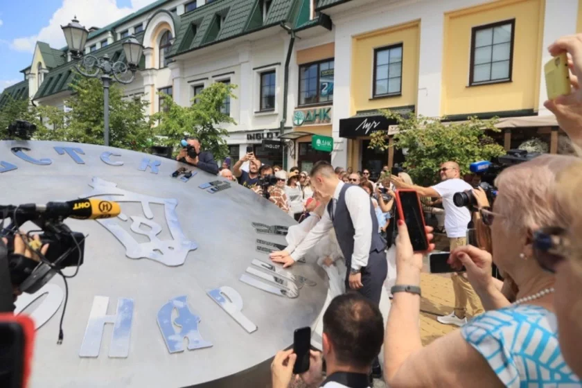 Первыми прикоснуться к пуговице и загадать желание было предоставлено брестским молодоженам. Кстати, сегодня в городе 31 пара заключает брак.