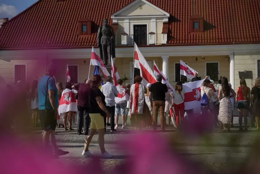 Белорусы и друзья Беларуси из Белостока 9 августа собрались на площади Костюшко.