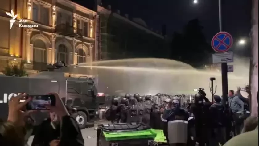У президентского дворца происходят столкновения между демонстрантами и силовиками. Спецназ МВД Грузии использовал водомёт, когда протестующие пытались прорваться в резиденцию президента. Кроме того, спецназ применил слезоточивые гранаты в центре Тбилиси.