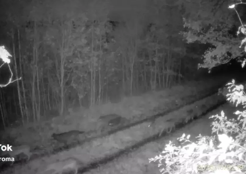 В тиктоке видео @skuryatroma, снятое фотоловушкой возле деревни Денисковичи, собрало почти 2 млн просмотров.