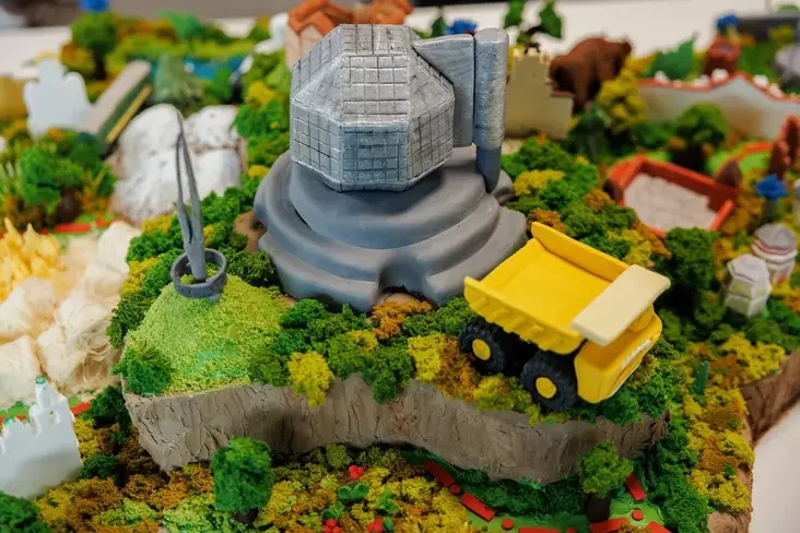 Декор торта выполнен вручную и воссоздает знаковые достопримечательности и символы каждого региона: от Национальной библиотеки и Брестской крепости до карьерных самосвалов, Беловежской пущи, аистов и зубров.
