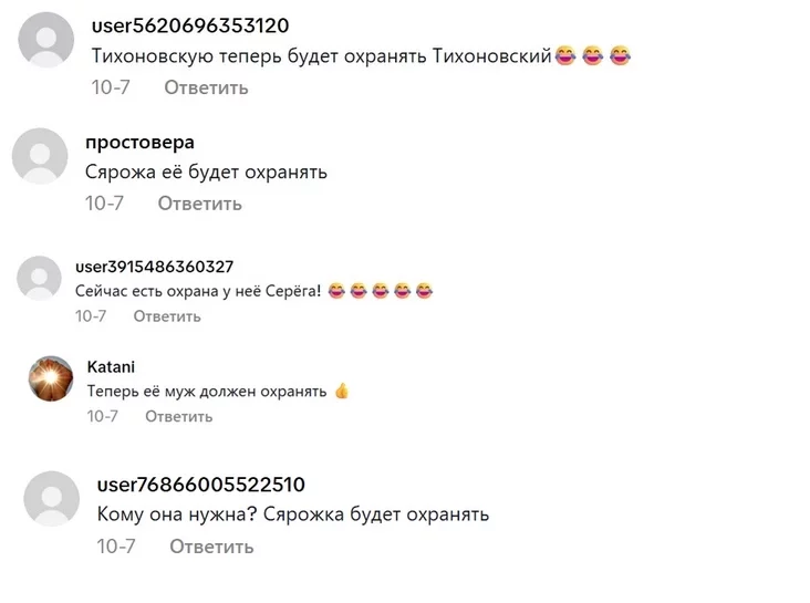 Другая группа ботов получила указание постить шутку юмора, что теперь охраной Светланы займётся её муж Сергей.