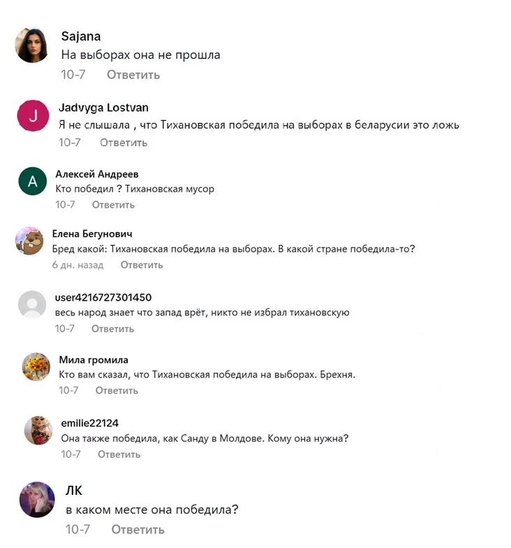 • Я не слышала, что Тихановская победила на выборах в Беларуси, это ложь