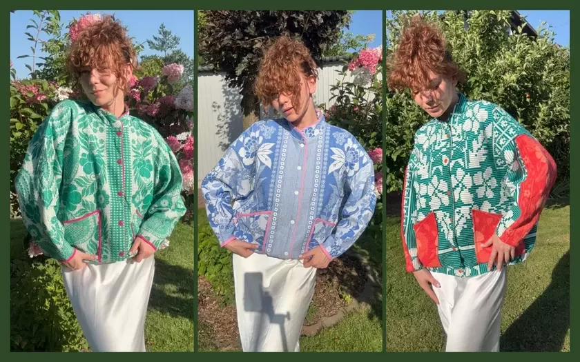 А весной этого года она сшила первый бомбер из теплого покрывала.