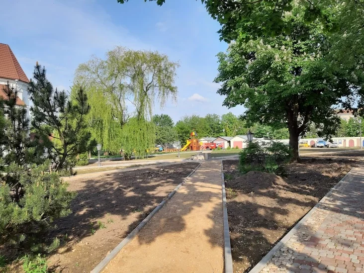 Парк, который хотел сделать приход на месте бывшего кладбища, — единственный законный вариант использования этой территории. Сегодня уже высаженные кусты и деревья пришлось срочно пересаживать в те части парка, которые остались за костелом, так как на них наступает стройка КГБ.
