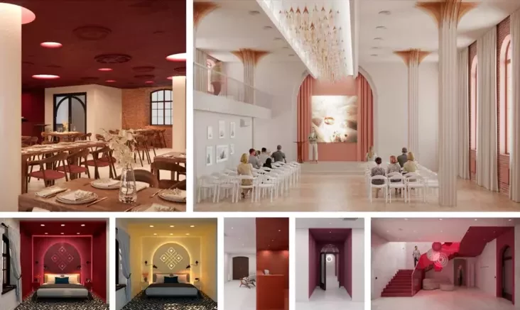 Интерьеры школы построены на принципах открытости, света и свободы действия: большие стеклянные поверхности, насыщенные цвета и многофункциональные пространства поддерживают идею, что «талант — в каждом движении».