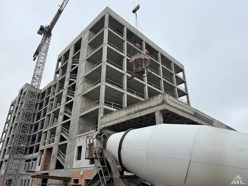 Строители уже завершили основной каркас. Над входной группой, где запроектированы большие пролеты без колонн, они залили специальное облегченное кессонное перекрытие, которое напоминает пчелиные соты. Это помогает уменьшить нагрузку на несущие стены и фундаменты, сообщает канал.