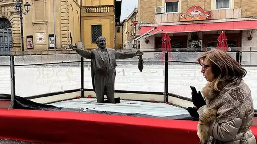 В Италии разразился скандал после того, как в городе Пезаро вокруг бронзовой статуи знаменитого тенора Лучано Паваротти залили рождественский каток. В результате скульптура оказалась словно «по колено во льду» и огороженная стенками из оргстекла, пишет Би-би-си.