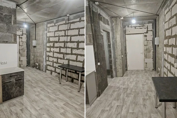 — Без ремонта, но для проживания есть все необходимое, — отмечает автор объявления. — Установлены унитаз, ванна, столешница с мойкой, на полу линолеум, стены прогрунтованы. Розетки все есть и выключатель. В санузле есть трубы и 220 В для подключения стиральной машинки.