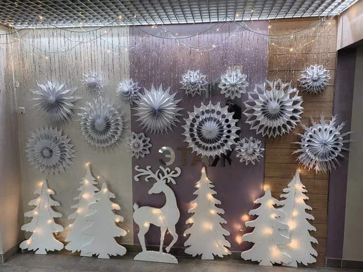 «Жильцы скооперировались и самостоятельно докупили материалы для декора: пенопласт для елок, гирлянды, венки на двери, канцелярские мелочи вроде скотча, клей. Они также предоставили офисную бумагу для подвесных украшений и упаковочную бумагу для коробок. Украсили много чего: и входные двери, и холлы перед лифтами, и тамбуры, и лифты, и даже первый этаж».
