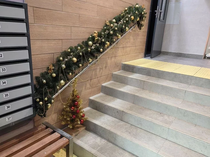 Жители многоэтажки скинулись и самостоятельно украсили подъезд к Новому году — посмотрите сами