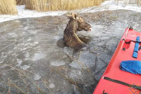 В Городокском районе спасли провалившегося под лед лося2